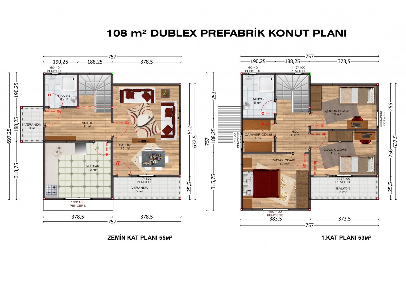 • Pencereler: 120*100 cm PVC ısıcamlı