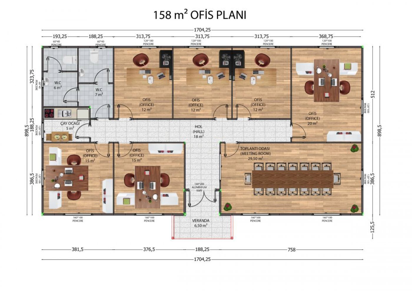 158 m2 Ofis Binası Prefabrik Ofis Binası Modelleri