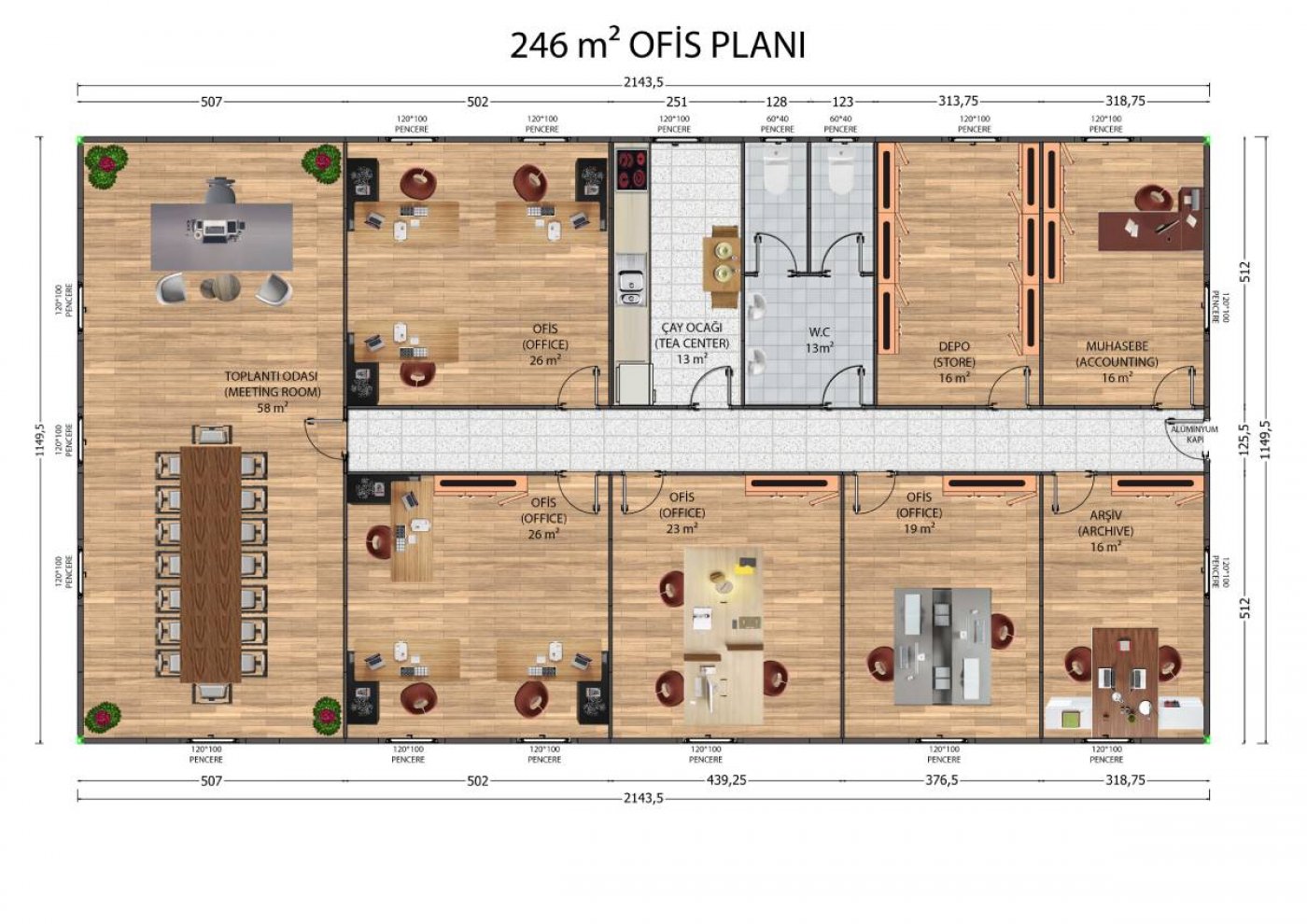246 m2 Prefabrik Ofis Binası