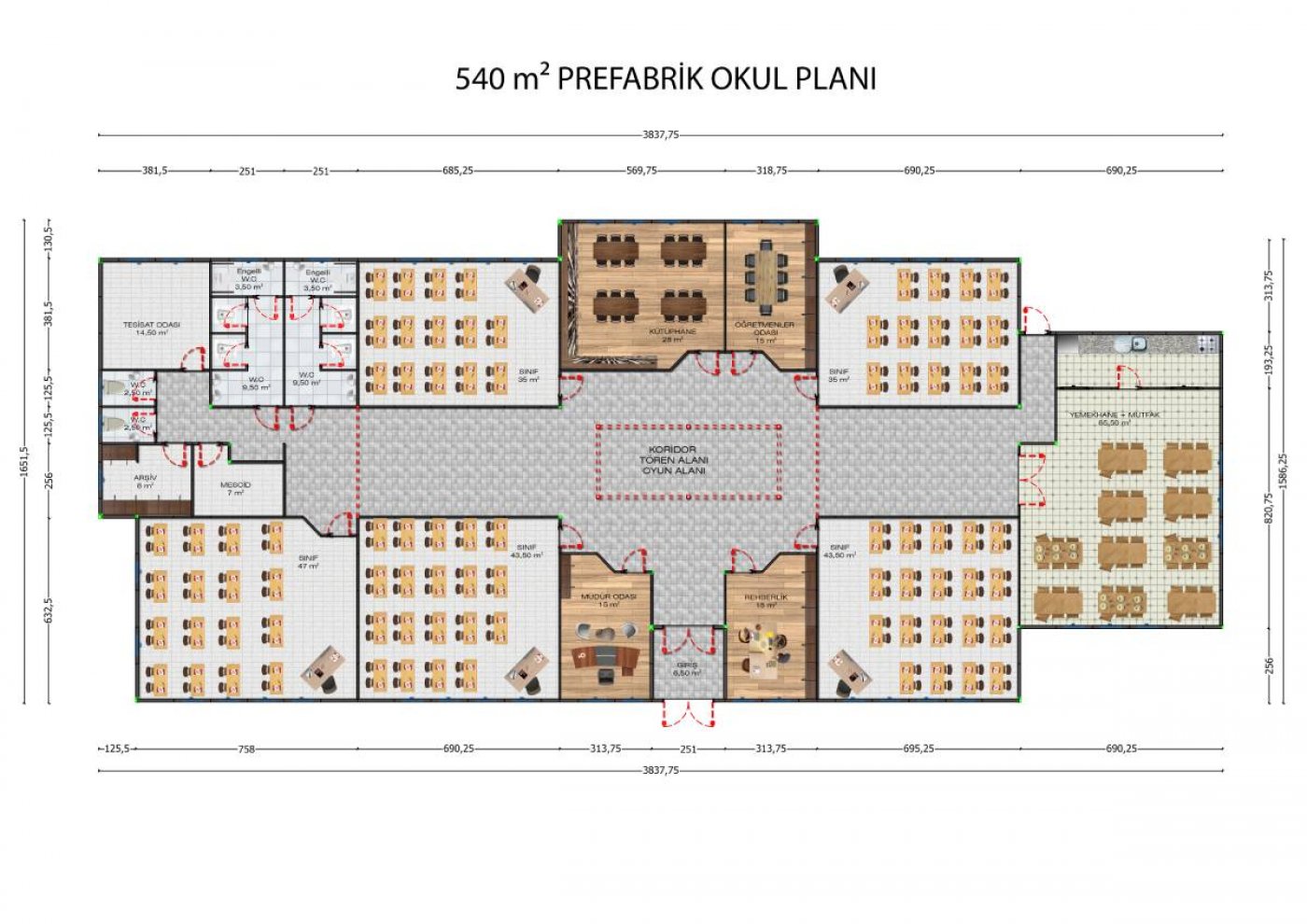 540 m2 Prefabrik Eğitim Binası Modelleri