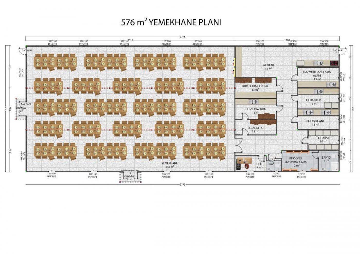 576 m2 Prefabrik Yemekhane Binası Modelleri