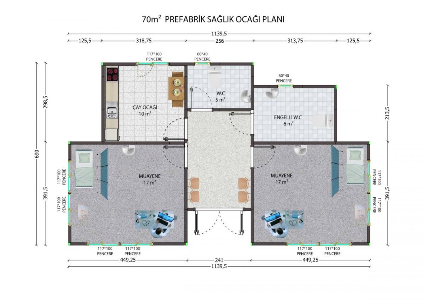 70 m2 Prefabrik Sağlık Binası Modelleri