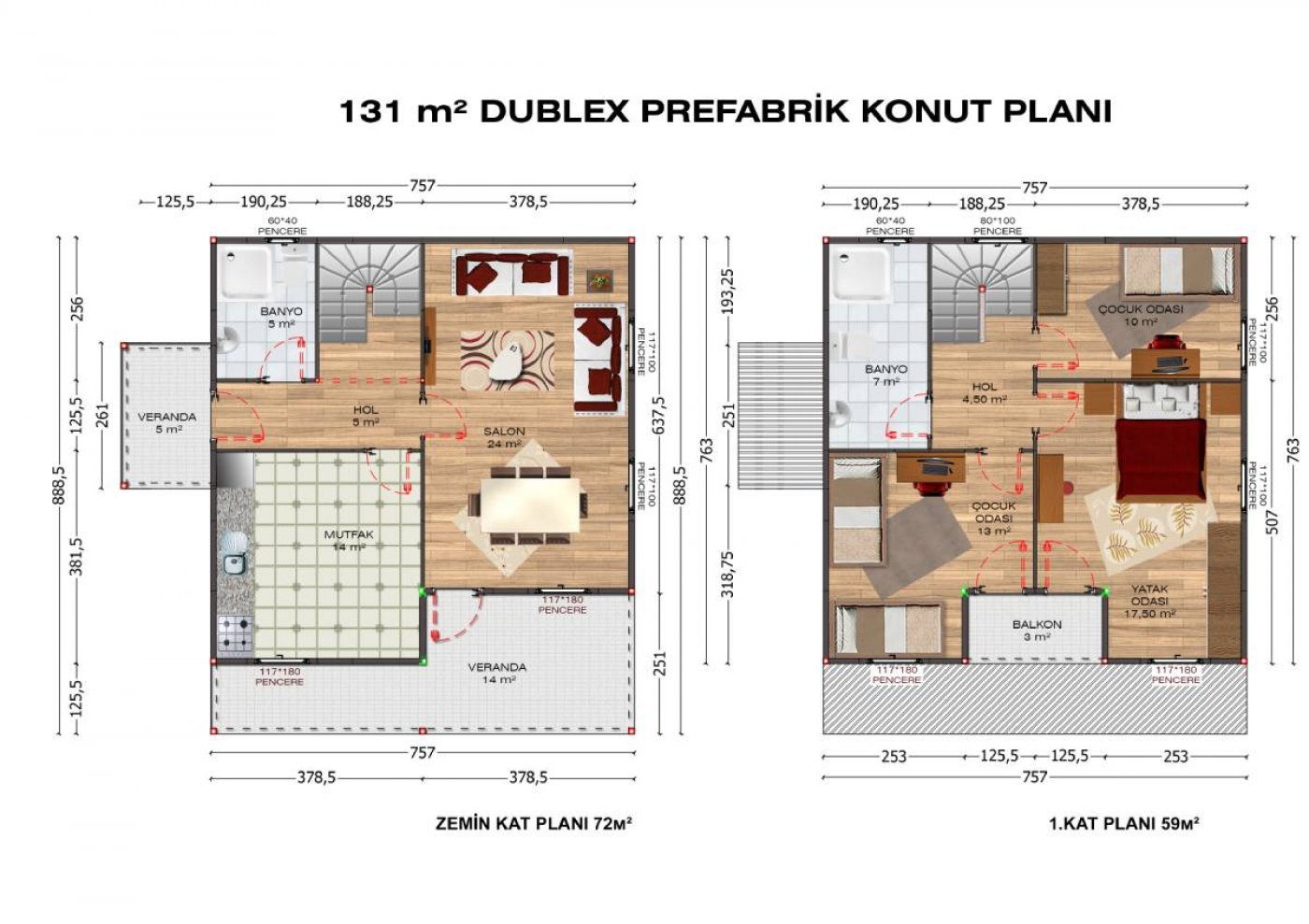 131 m2 Çift Katlı Prefabrik Ev Modelleri