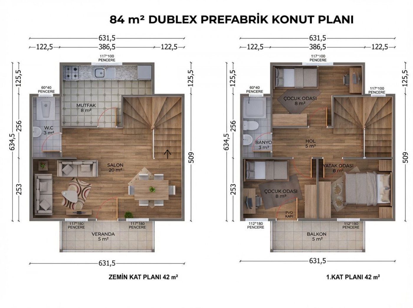 84 m2 Çift Katlı Prefabrik Ev Modelleri