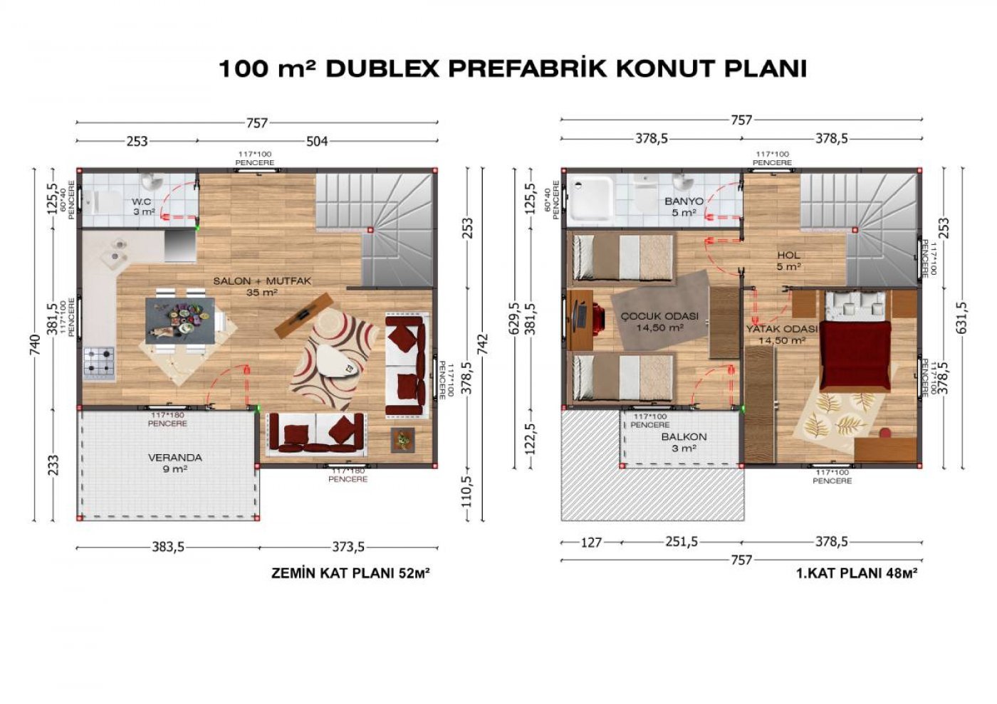 100 m2 Çift Katlı Prefabrik Ev Modelleri