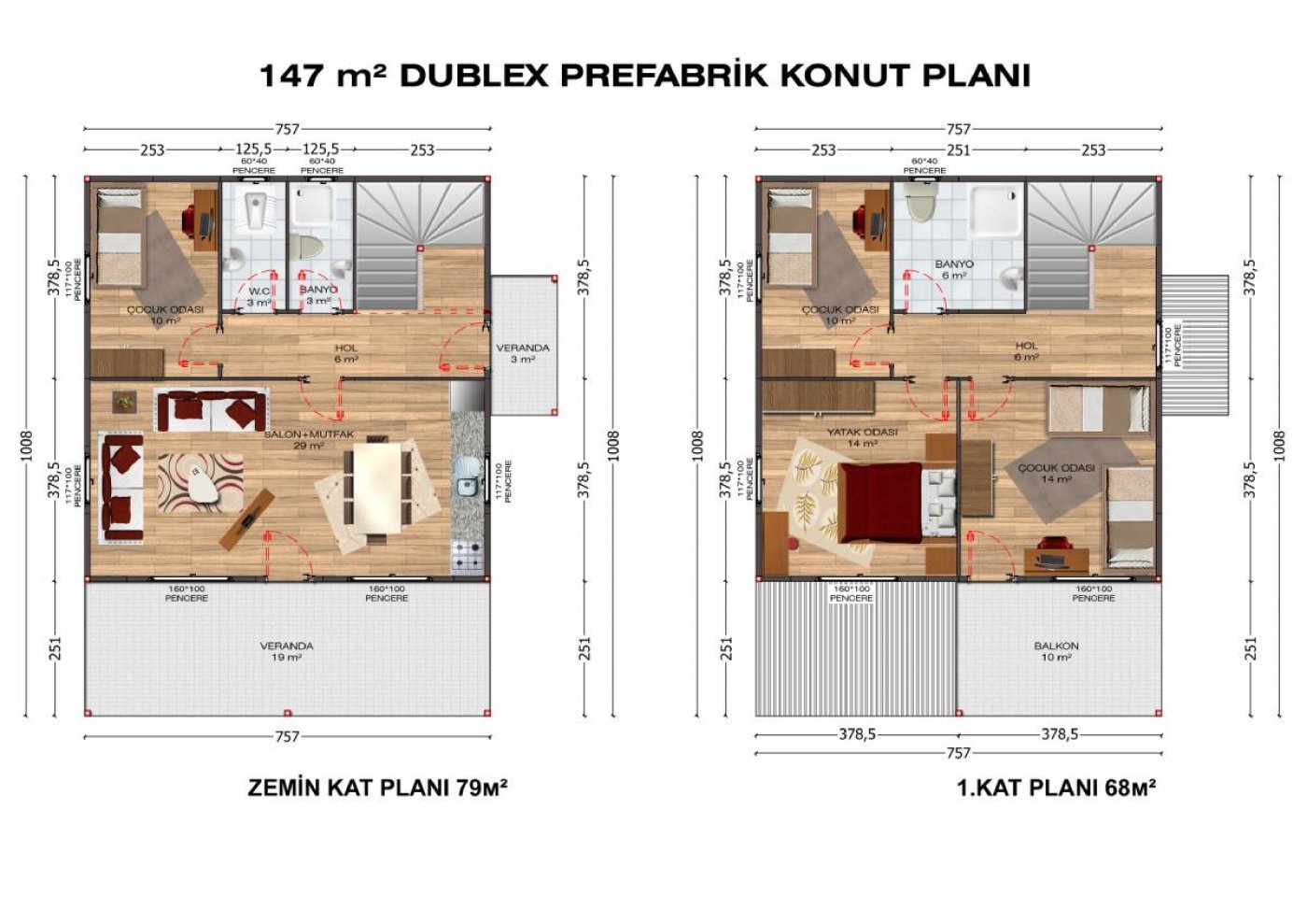 147 m2 Çift Katlı Prefabrik Ev Modelleri
